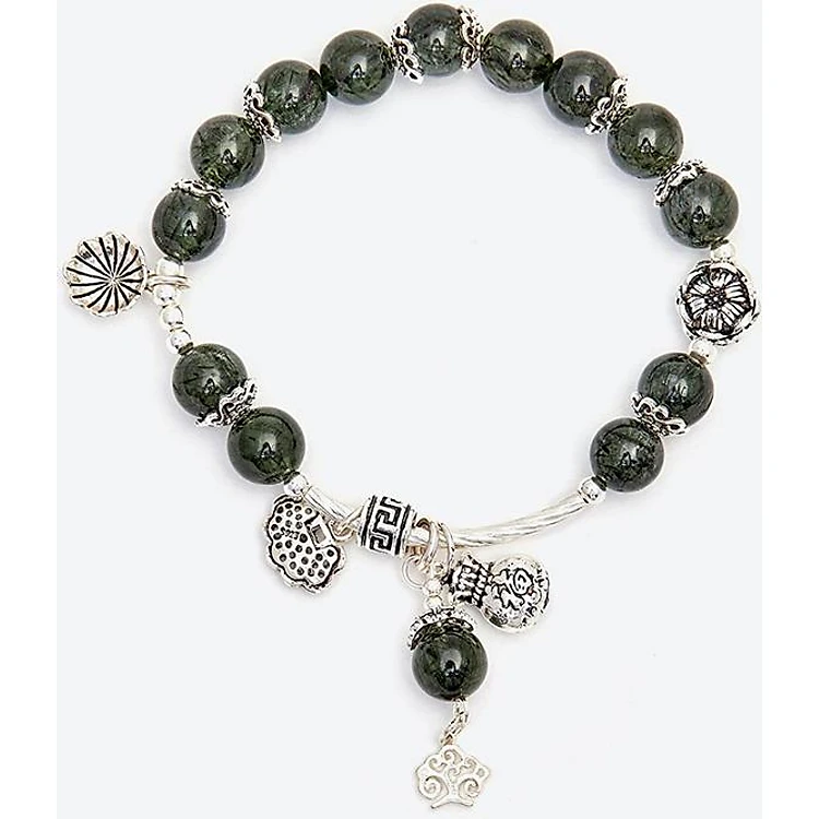 Vòng tay thạch anh tóc xanh phối hoa sen Ngọc Quý Gemstones