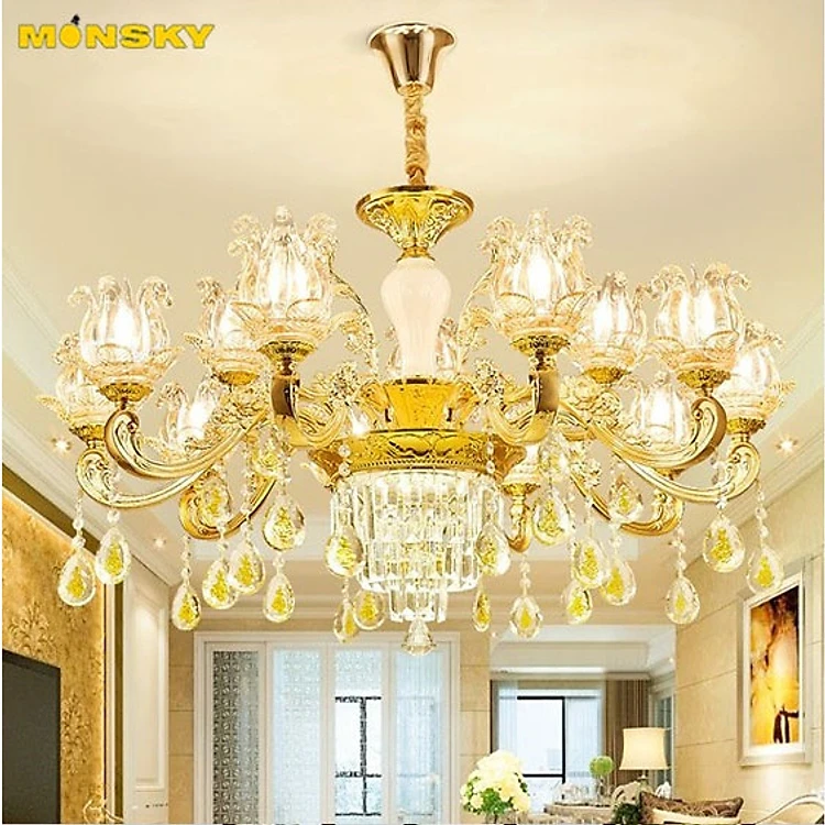Đèn chùm ROSIT phong cách Châu Âu trang trí nội thất hiện đại, sang trọng loại 15 tay - kèm bóng LED chuyên dụng.