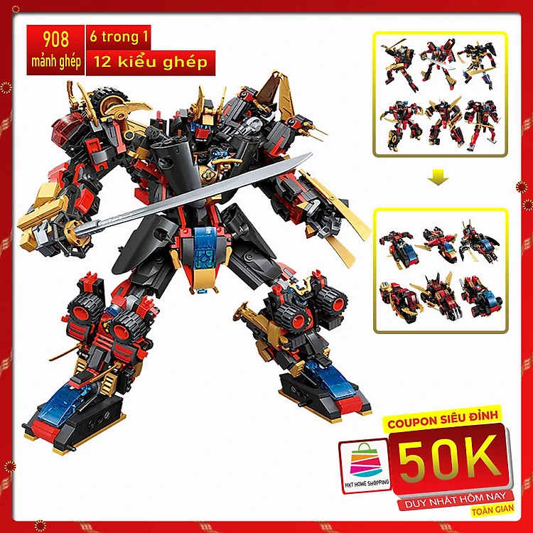 đồ chơi lắp ráp xếp hính Robot Biến Hình 6 trong 1 với hơn 900 chi tiết Bằng nhựa ABS an toàn