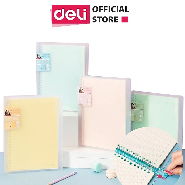 Sổ Tay Ghi Chép B5 Gáy Lò Xo 60 Trang Deli - Xanh Dương/Hồng/Vàng/Xanh Lá - QHB560
