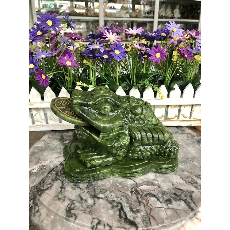 Tượng Cóc 3 Chân, Cóc Ngậm Tiền, Thiềm Thừ phong thủy chiêu tài lộc đá ngọc Ấn Độ - Dài 18 cm