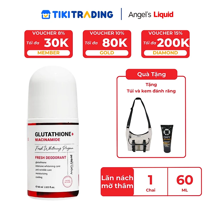 Lăn Nách Mờ Thâm, Dưỡng Trắng Da Angel's Liquid Glutathione Plus Niacinamide Fresh Deodorant 60ml