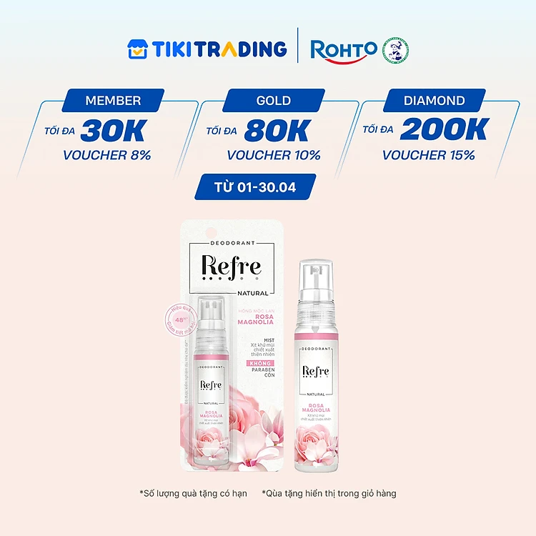 Xịt khử mùi chiết xuất thiên nhiên Refre Natural Rosa Magnolia Hồng Mộc Lan 30ml