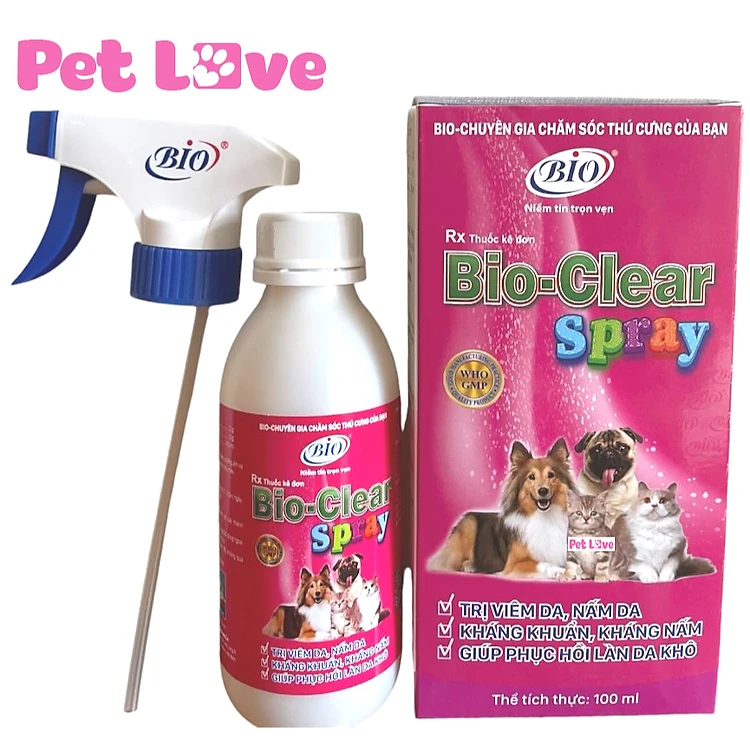 Chai xịt viêm da, nấm da chó mèo Bio Clear Spray (100ml)