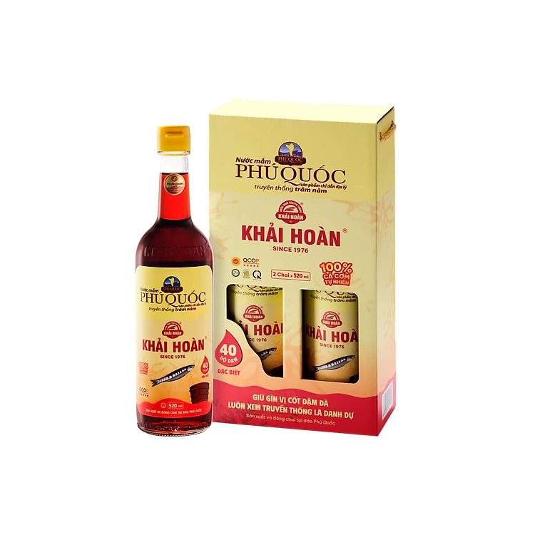 Đặc Sản Phú Quốc - Hộp 2 Chai Thủy Tinh Nước Mắm Phú Quốc Khải Hoàn 40 Độ Đạm (520Ml X 2) - Ocop 5 Sao
