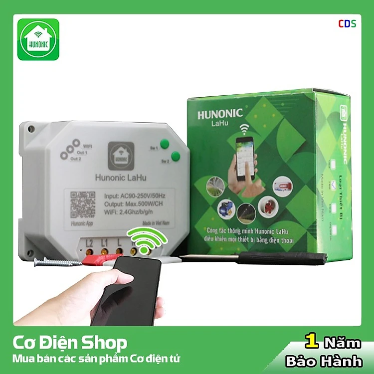 Công tắc ĐIỀU KHIỂN TỪ XA bằng điện thoại Hunonic Lahu 2 kênh 500W/kênh + Hẹn giờ thông minh | Công nghệ 4.0
