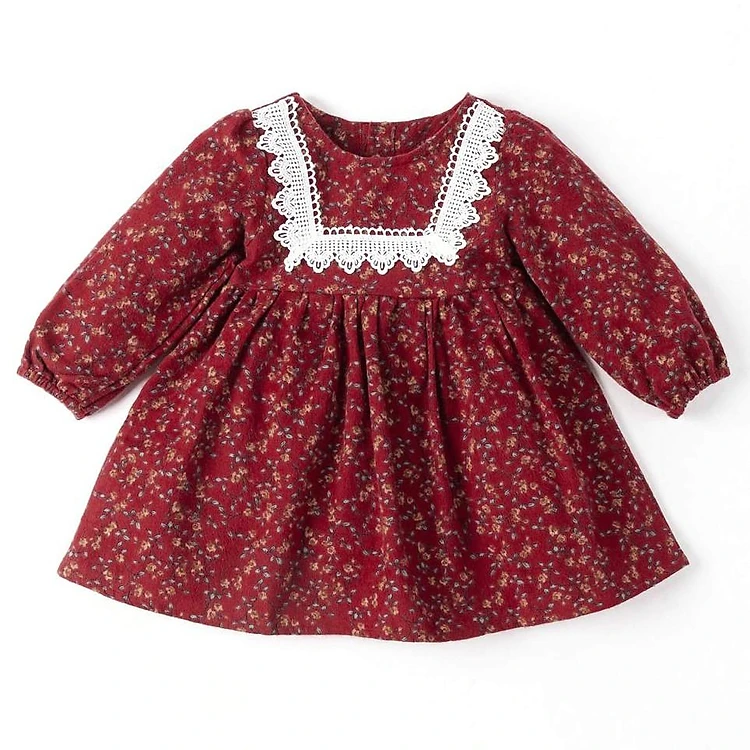Váy đầm bé gái hoa nhí dài tay màu đỏ đô