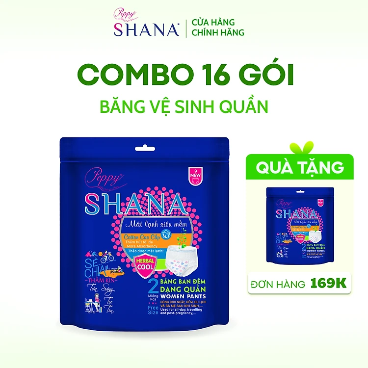 Combo 16 gói Băng Vệ Sinh Quần Peppy Shana Ngày Đêm Siêu Thấm, Freesize, Chống Tràn Tối Đa, Tiết Kiệm (32 miếng)
