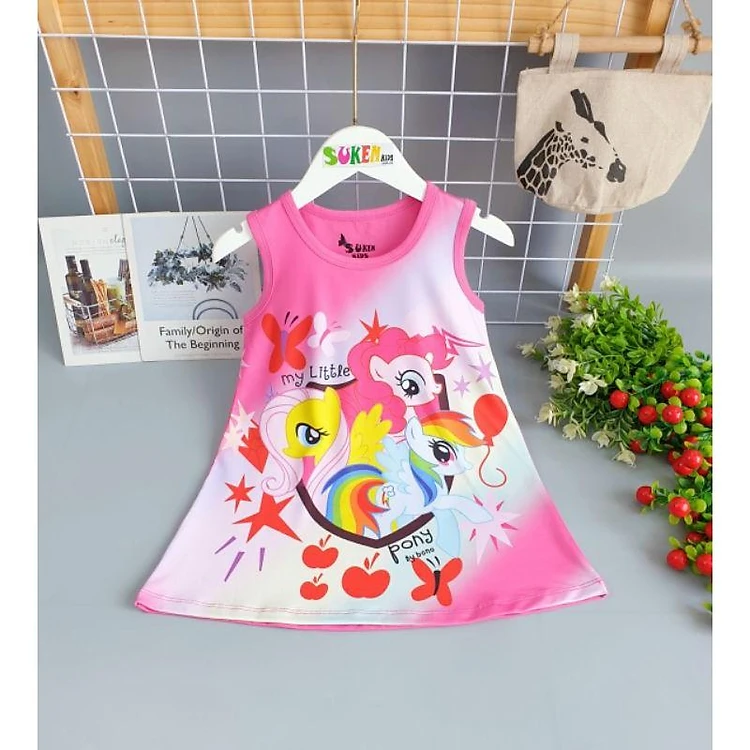 Váy Đầm thun Bé Gái ngựa PONY sát nách vải thun cotton 4 chiều Mềm Mát size nhí đại 1-14 elsa