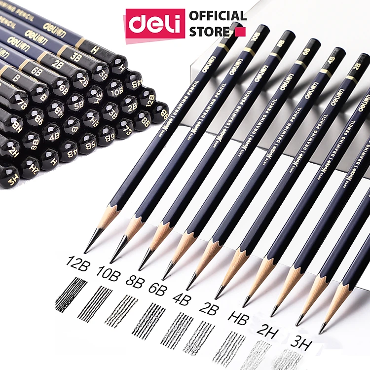 Bút Chì Phác Thảo Cao Cấp Deli Nuevo S999 | Độ Cứng Từ B - 14B, H, 2H, 3H, HB - 12 Chiếc