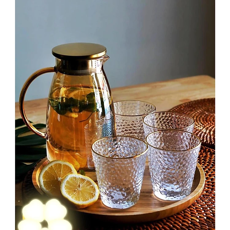 COMBO BÌNH THỦY TINH ĐỰNG NƯỚC CHỊU NHIỆT KÈM 6 CỐC VÀ KHAY GỖ ĐỰNG ( GIAO NGẪU NHIÊN ) - VD64
