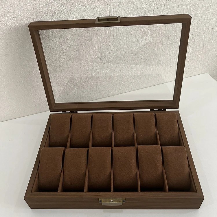 Hộp đựng đồng hồ - Hộp đựng 12 đồng hồ 2 hàng bằng gỗ màu nâu