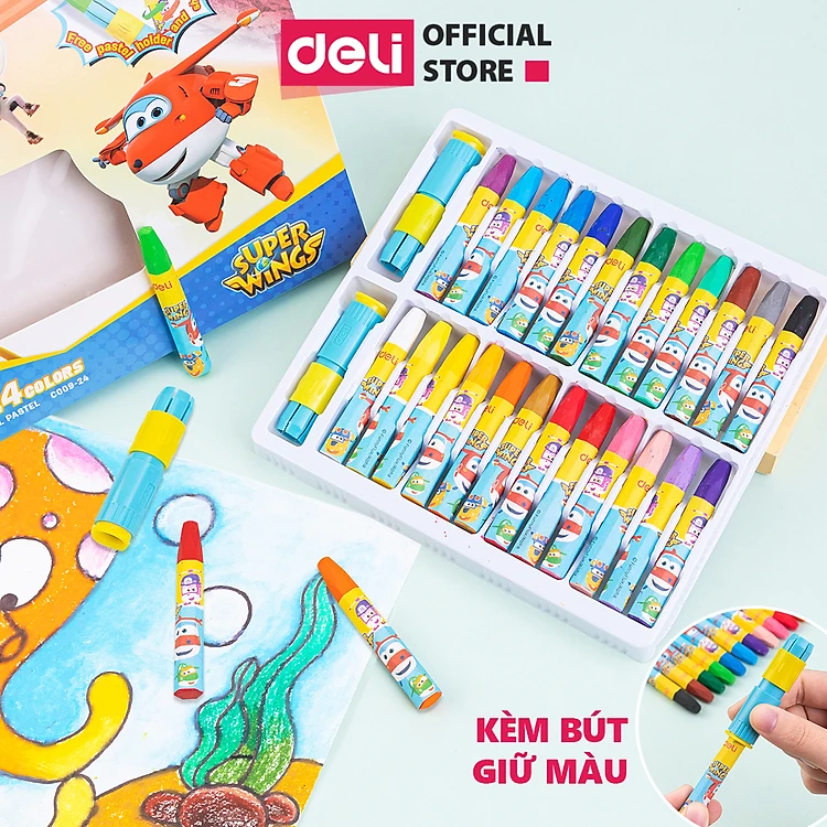 Bút sáp dầu Super Wings x Deli – thân lục giác – 12/18/24 màu - EC009-12 /EC009-18/ EC009-24