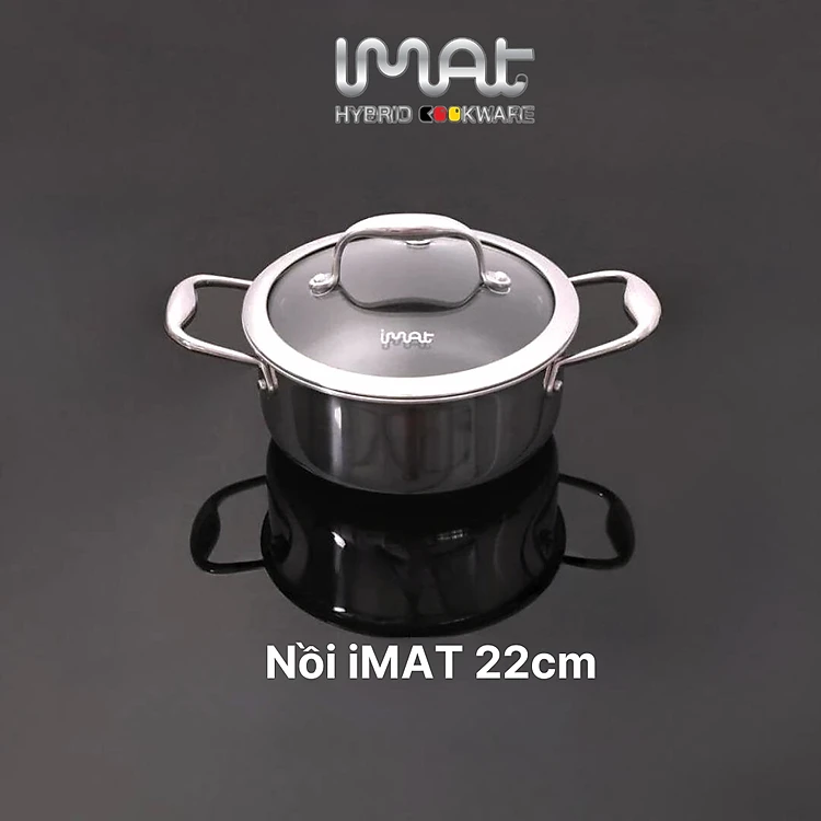 [Hàng chính hãng] Nồi nông inox iMat Blackcube 22cm, Cao 9.8cm, Thể tích 3.2l, Phủ chống dính Daikin-Nhật Bản thế hệ mới