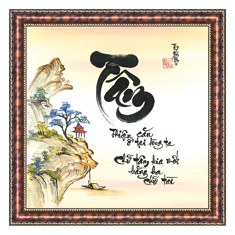 Tranh Thư Pháp CHỮ TÂM Ý NGHĨA V44-34 (46 x 46 cm) Thế Giới Tranh Đẹp