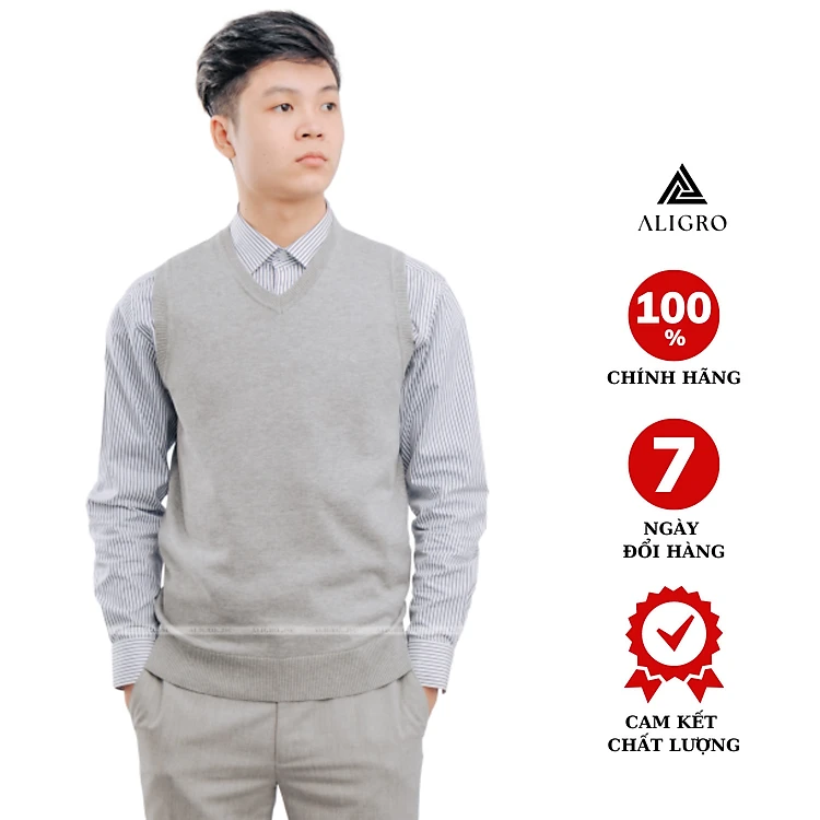 Áo len gile Aligro màu ghi sáng ALENGL010