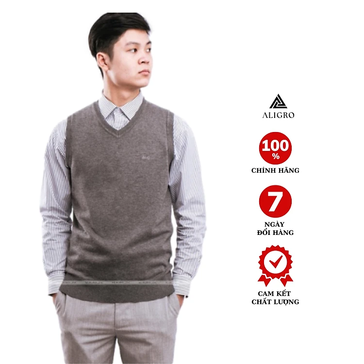 Áo len gile Aligro màu ghi đậm ALENGL011