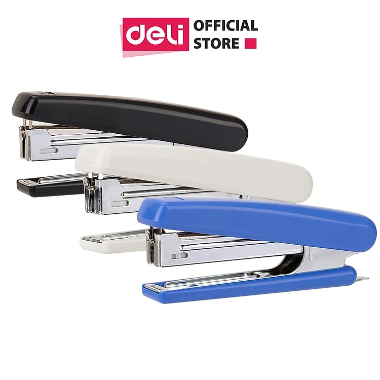 Dập ghim #10 Deli, kèm hộp đựng ghim 15 trang, Đen, xanh, xám - 1 cái E0251
