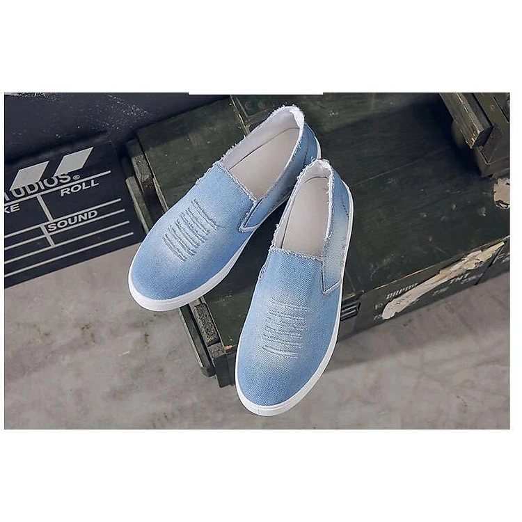 Giày Lười Vải Bò Nam Màu Xanh Nhạt Dáng Hàn Quốc HD