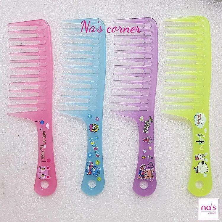 Lược nhựa răng thưa size lớn dài 24.5cm dễ thương màu vintage cán cầm tay nhựa trong