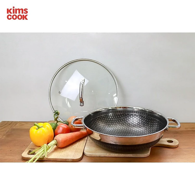 Chảo chống dính 2 mặt sâu lòng inox 304 BLACKCUBE KimsCook dòng noonsong 3 lớp đúc liền đáy liền cào không xước,siêu bền