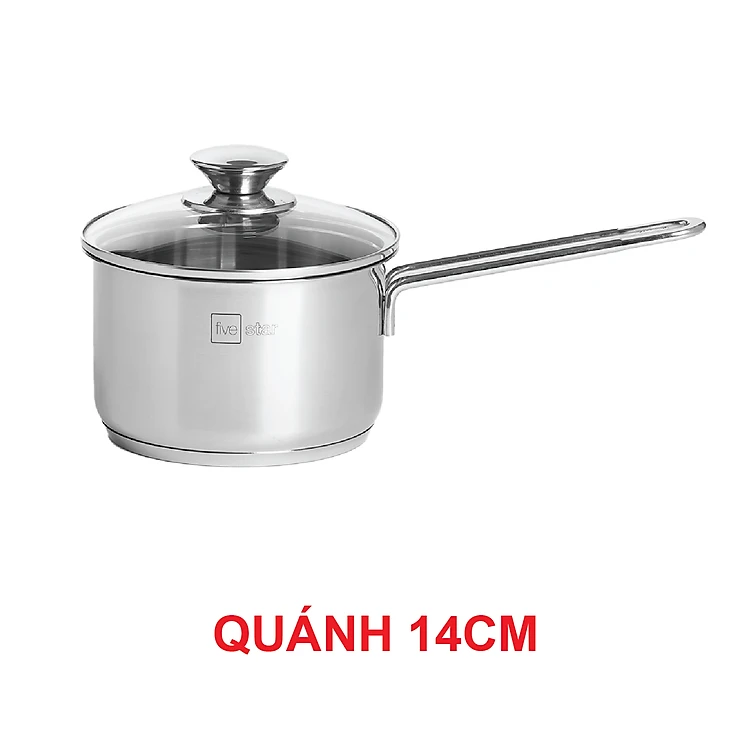 Quánh nấu cháo bột inox 430 Fivestar Standard nắp kính 3 đáy bếp từ ( 12cm / 14cm / 16cm ), tặng 5 muỗng ăn