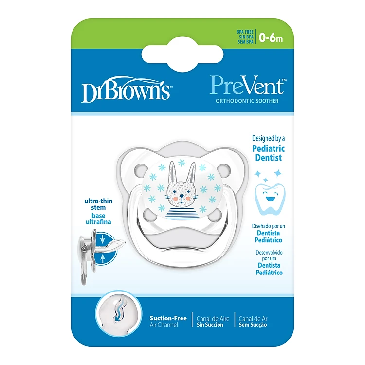 [ PV11403 ] Ty ngậm hỗ trợ chống đột tử/chỉnh nha/chống vẩu Dr.Brown's Prevent hoạ tiết con Thỏ ( 0-6m )