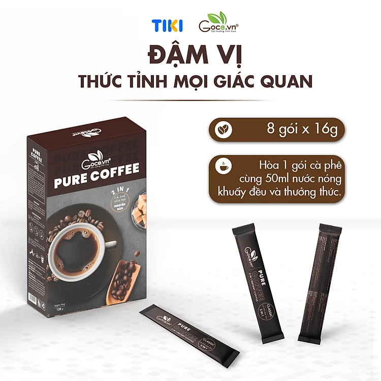 Pure Coffee Goce - Cafe Đen hòa tan 2 trong 1 - 128g (8 gói x 16g)