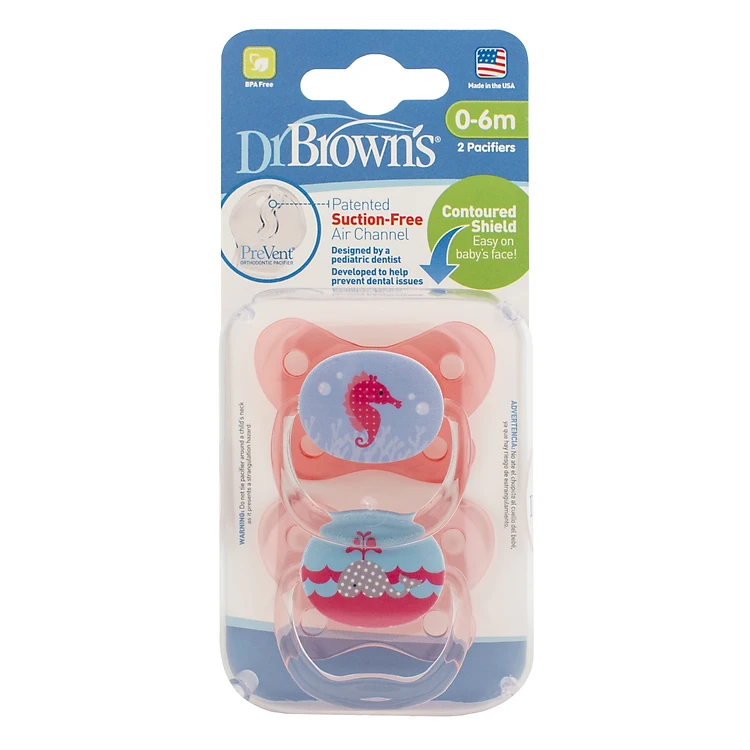 [ PV12001 - Hồng ] Set 2 ty ngậm Prevent chỉnh nha, chống vẩu Dr.Brown's ( 0-6m )
