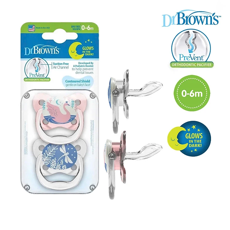[ PV12007 ] Set ty ngậm hỗ trợ chống đột tử/chỉnh nha/chống vẩu Dr.Brown's Prevent, phát sáng dạ quang ( 0-6m )