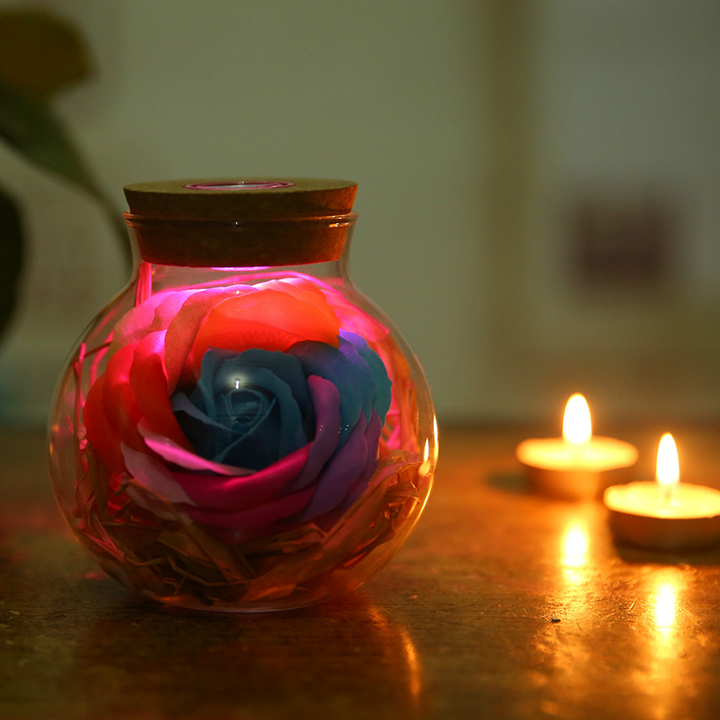Quà 20/10 – Lọ hoa hồng sáp thủy tinh phát sáng