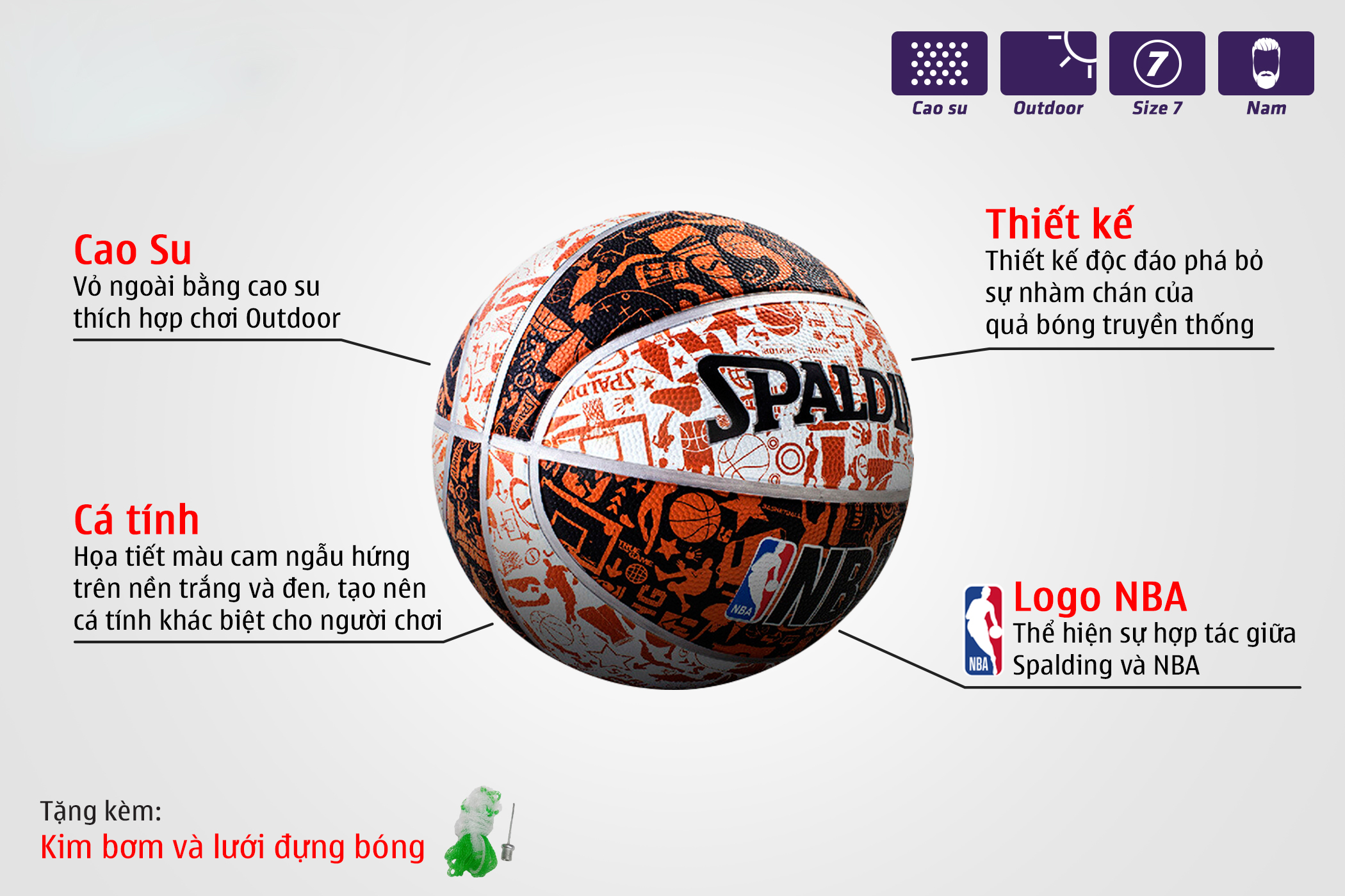 Bóng rổ Spalding Graffiti là một quả bóng rổ tốt, đáp ứng được rất nhiều tiêu chí: mẫu mã đẹp, độ bền cao, dễ kiểm soát, độ nảy ổn định tuyệt đối. Vì vậy, bóng rổ Spalding Graffiti đã chính thức trở thành bóng thi đấu của NBA (là giải đấu bóng rổ chuyên nghiệp tổng hợp của khu Bắc Mỹ).