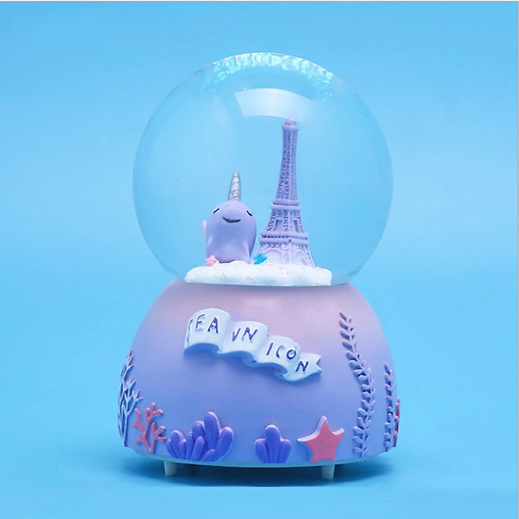 Quả cầu pha lê tuyết có hộp phát nhạc và đèn phát sáng xinh xắn kèm pin tiện ích - giao hình ngẫu nhiên