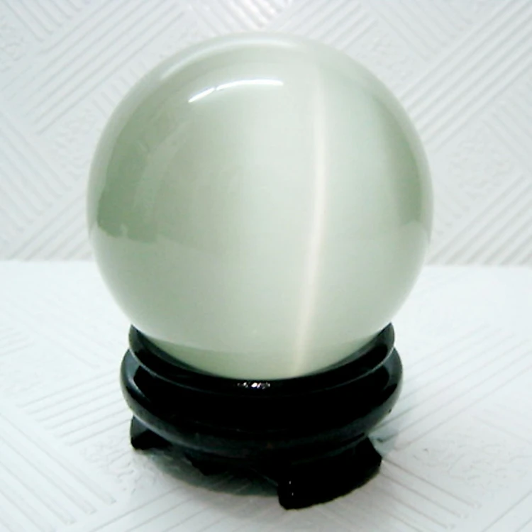 Quả Cầu Phong Thủy Mắt Mèo Trắng - Xoay Chuyển Vận Thế - Hợp Mệnh Kim,Thủy - Tặng Kèm Đế