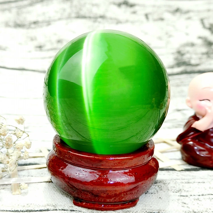 Quả Cầu Phong Thủy Mắt Mèo Xanh Lá - Ánh Sáng Soi Đường Cho Bạn - Sự Nghiệp Như Ánh Sáng Ban Mai - Thành Công Rực Rỡ - Hợp Mệnh Mộc , Hỏa - Tặng Kèm Đế