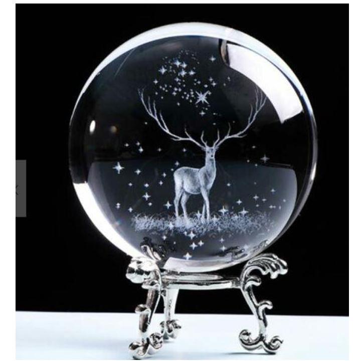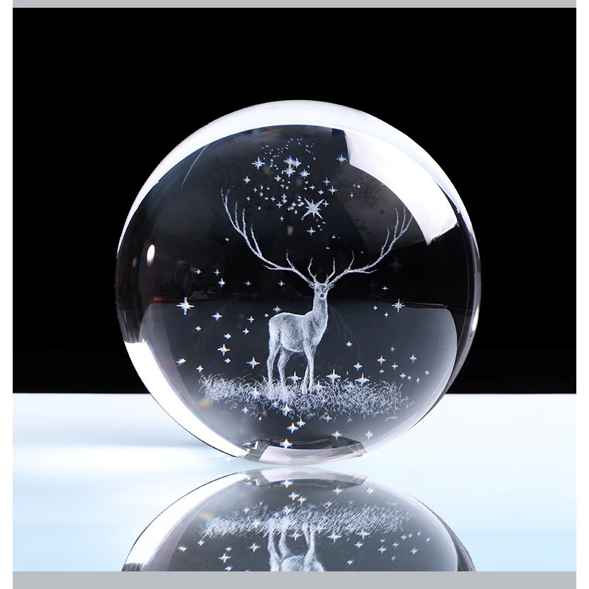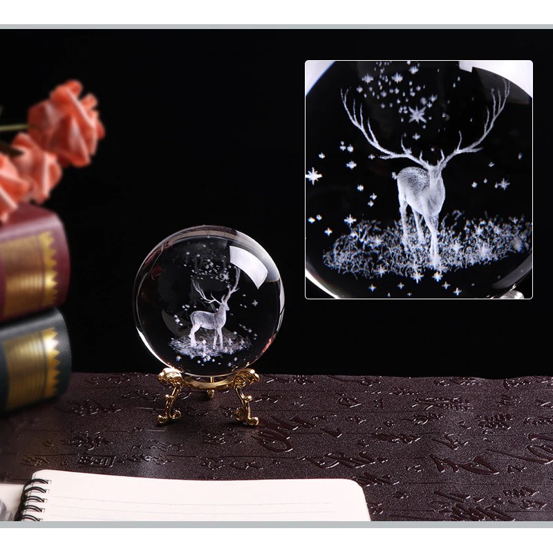 Quả cầu thủy tinh pha lê Hươu trong rừng có đèn phát sáng 7 màu tặng ảnh Vcone