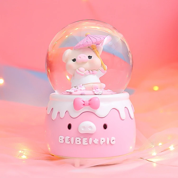 Quả Cầu Tuyết Hộp Nhạc Heo BeiBei Hồng Trang Trí Quà Tặng_ Hàng Chính Hãng