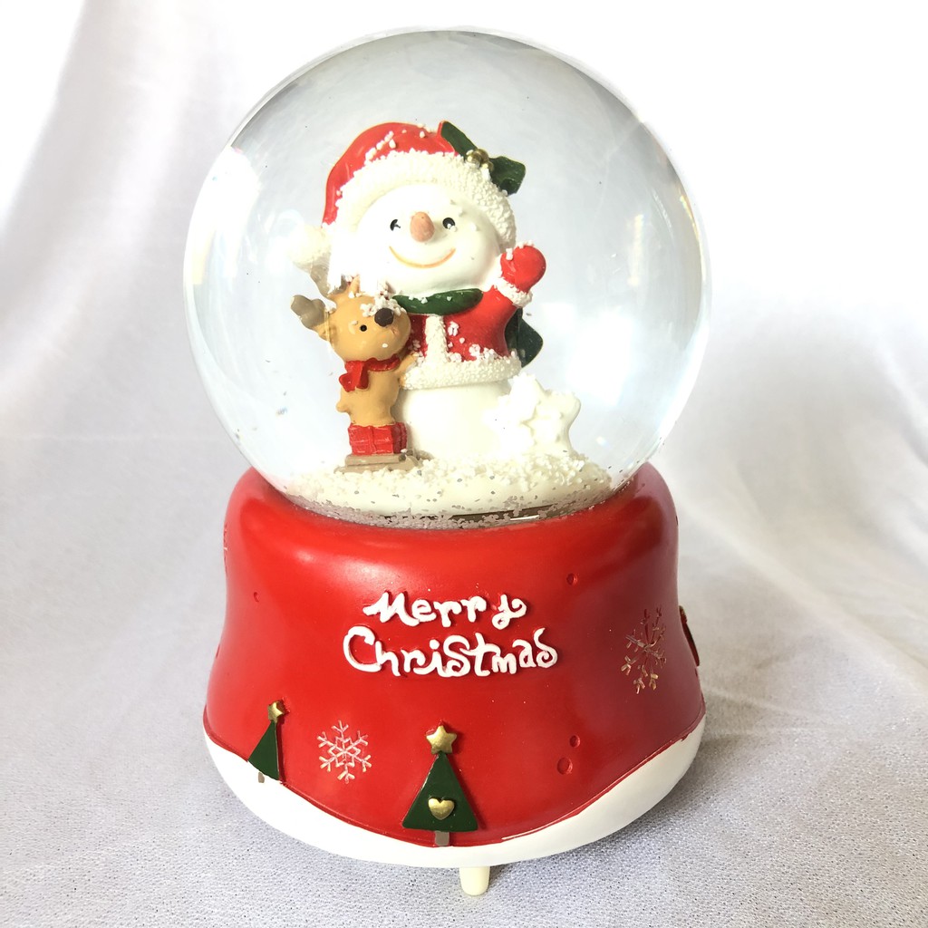 Quả Cầu Tuyết Pha Lê 16x11x11cm Có Nhạc Và Đèn - Quà Tặng Noel Giáng sinh Năm mới (mẫu 2020)