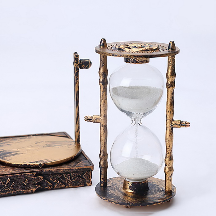 - Đồng hồ cát được làm từ thủy tinh trong suốt, bên trong đồng hồ cát có những hạt cát trắng tinh, chúng có thể chảy qua lại hai đầu với nhau mỗi khi ta xoay vòng nó.