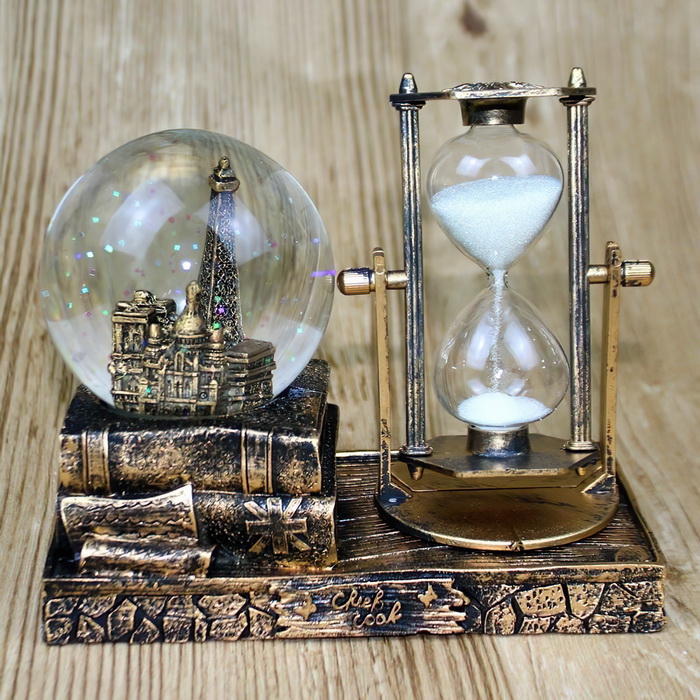 - Phía bên phải sản phẩm là đồng hồ cát, đồng hồ cát đứng cạnh quả cầu tuyết như muốn nói với chúng ta một điều rằng, để đạt được hạnh phúc đó tất cả chúng ta đều phải trải qua những thăng trầm, buồn, vui trong cuộc sống. Nhắc chúng ta phải trân trọng nó, và khi nó đi qua thì đừng có nuối tiếc vì khi hạnh phúc này qua đi thì hạnh phúc khác sẽ đến. Và việc của chúng ta chỉ là tận hưởng hạnh phục đó và luôn nghĩ tới nó như là một kỷ niệm đẹp.