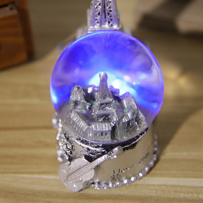 Quả cầu tuyết tháp Eiffel, Quả cầu pha lê tuyết có đèn led và tháp Eiffel - Màu bạc
