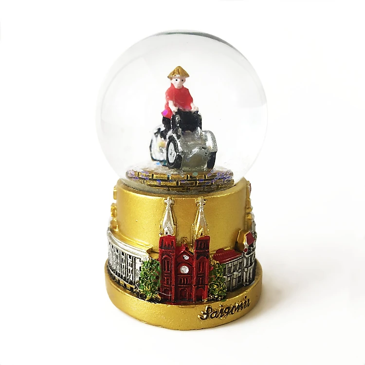 Quả Cầu Tuyết thuỷ tinh hình Xích Lô và thành phố Hồ Chí Minh (nhà thờ, Uỷ ban...) - Quà lưu niệm, quà sinh nhật Saigonir