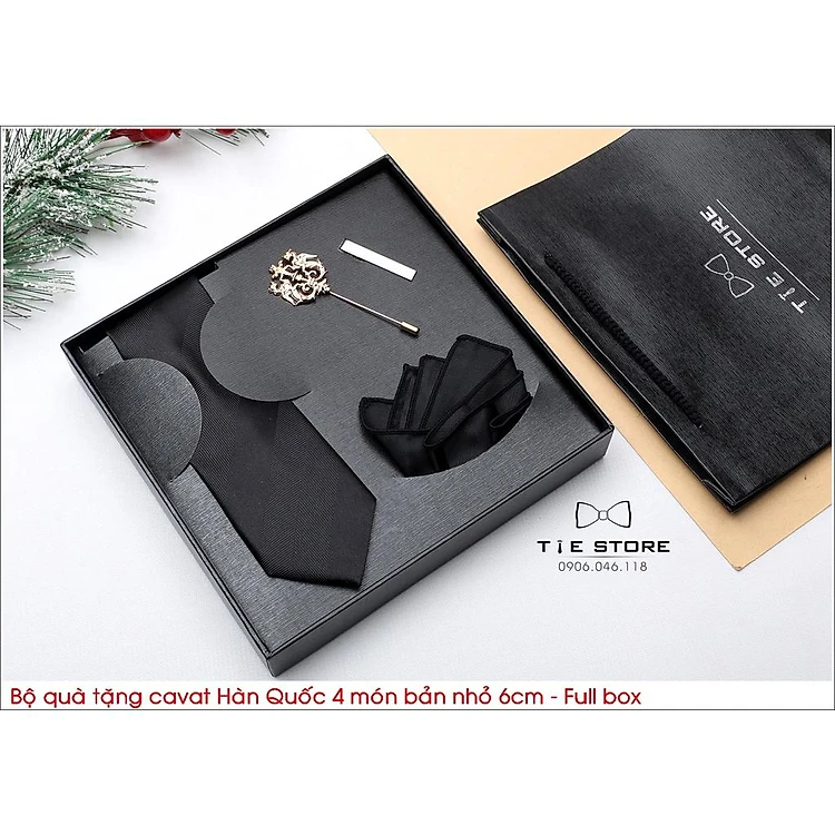 QUÀ TẶNG DOANH NHÂN CAO CẤP BẢN NHỎ 6CM - Full box kèm túi xách, màu đen kẻ