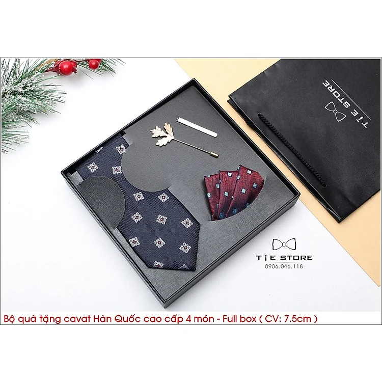 QUÀ TẶNG DOANH NHÂN CAO CẤP BẢN TRUNG 7CM - Full box kèm túi xách, màu ghi xanh họa tiết