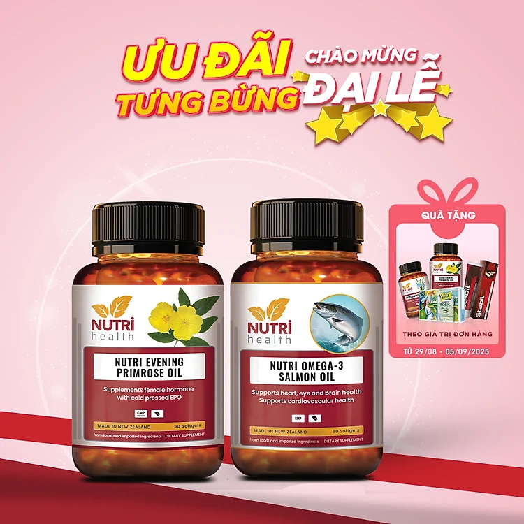 Bộ Sản Phẩm Bổ Sung Nội Tiết Tố Nữ: Nutri Evening Primrose Oil & Omega 3 - 60 Viên