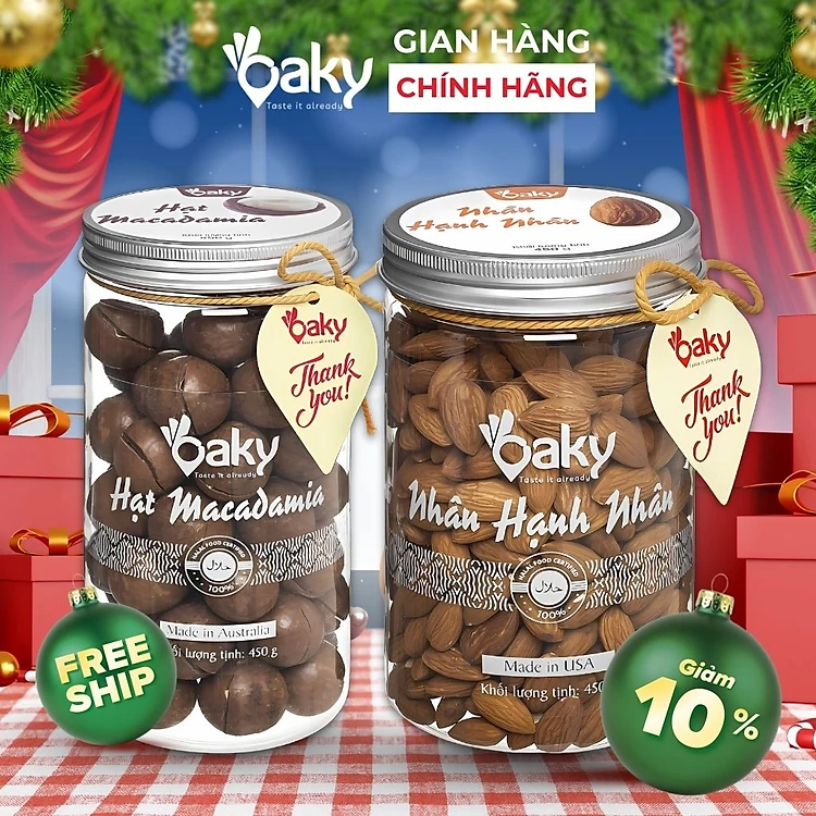 Quà Tặng Oaky - Combo Hạt Dinh Dưỡng Cao Cấp - Hạnh Nhân, Hạt Macca Size Lớn (450gr) - Tặng Túi Giấy Sang Trọng