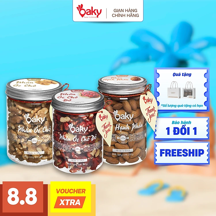Quà Tặng Oaky - Combo Hạt Dinh Dưỡng Cao Cấp Hạnh Nhân, Nhân Óc Chó Vàng, Nhân Óc Đỏ - Tặng Túi Giấy Sang Trọng