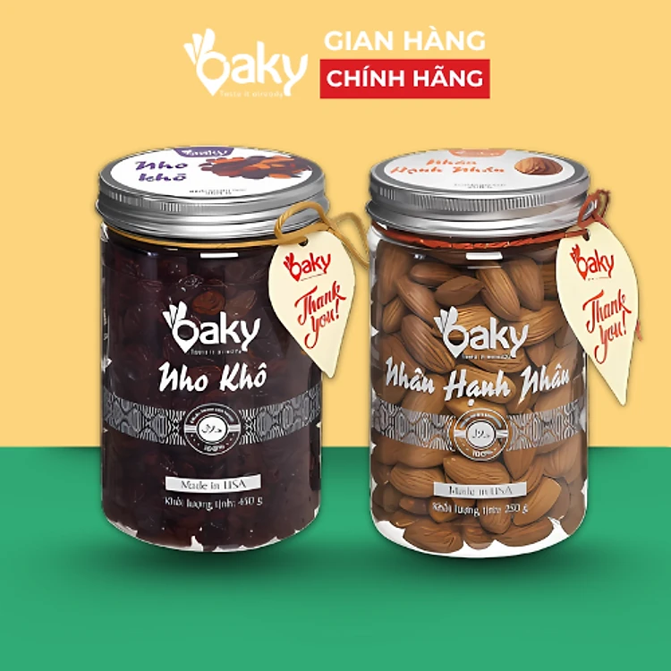Quà Tặng Oaky - Combo Hạt Dinh Dưỡng Cao Cấp Hạnh Nhân, Nho Khô - Tặng Túi Giấy