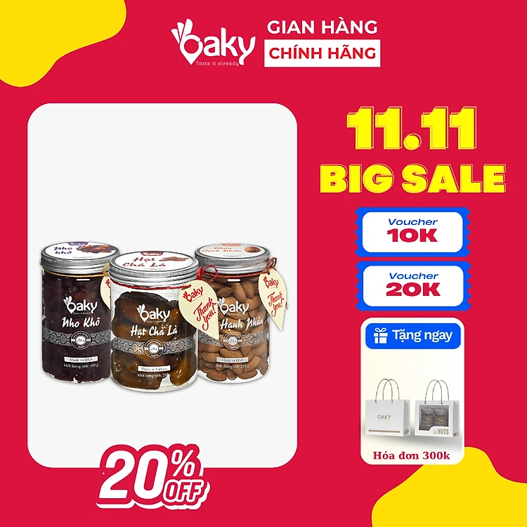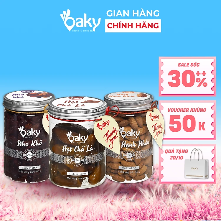 Quà Tặng Oaky - Combo Hạt Dinh Dưỡng Cao Cấp - Hạnh Nhân, Quả Chà Là, Nho Khô - Tặng Túi Giấy Sang Trọng