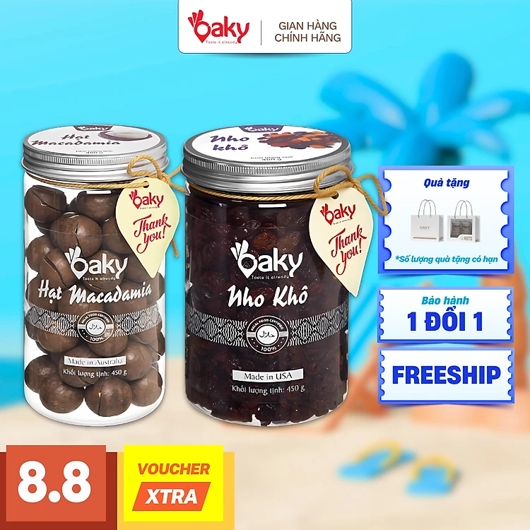 Quà Tặng Oaky - Combo Hạt Dinh Dưỡng Cao Cấp - Hạt Macca, Nho Khô Size lớn (450gram) - Tặng Túi Giấy Sang Trọng